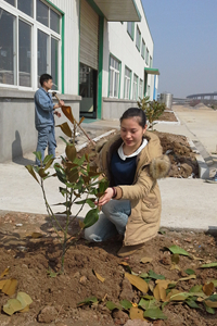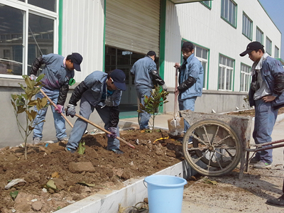 清晨,春風拂動,雖然空氣中還殘留著一絲冬的寒意,天氣還有些冷,卻掩蓋不住大家對于初春植樹的喜悅與熱情。上午9點鐘,植樹隊伍在公司行政大樓前集合,統(tǒng)一出發(fā)。植樹活動現(xiàn)場一片火熱的勞動景象,鏟土填坑、搬運樹苗、放樹苗、揮鍬培土,各項植樹工作有序地展開。不到兩個小時,60余棵樹苗全部栽種完畢,一排排新栽樹木在陽光下挺立,展示出勃勃生機。